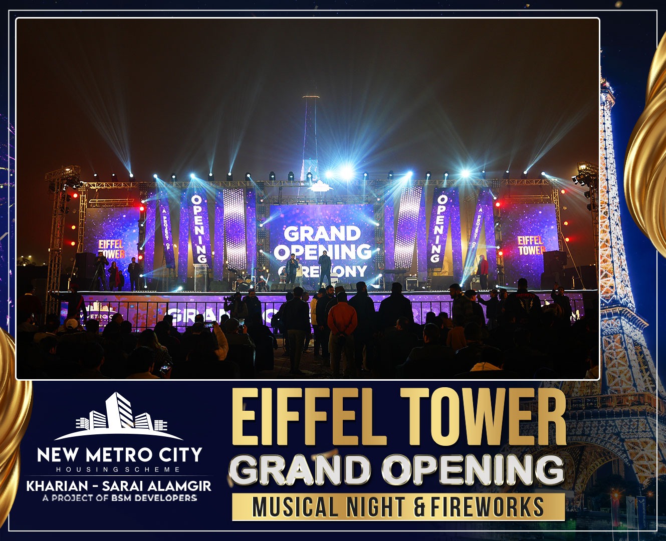 Eiffel Tower Grand Opening, Musical Night & Fireworks at NMC Kharian